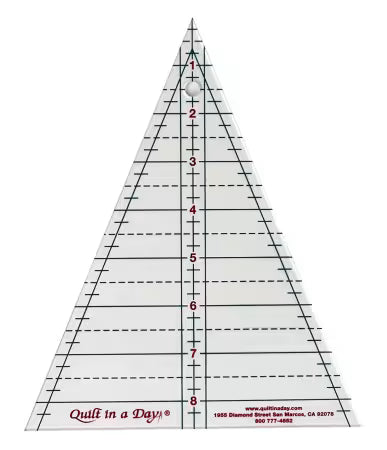 A triangular ruler to cut the pieces required for the 45 degree angles in the Kaleidoscope Quilt.