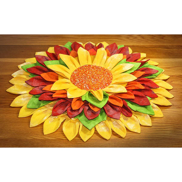 Create potholders, mug rugs or several sizes of table mats from two circles and a simple petal shape. The easy construction requires no binding or quilting, although quilting can be added if desired.